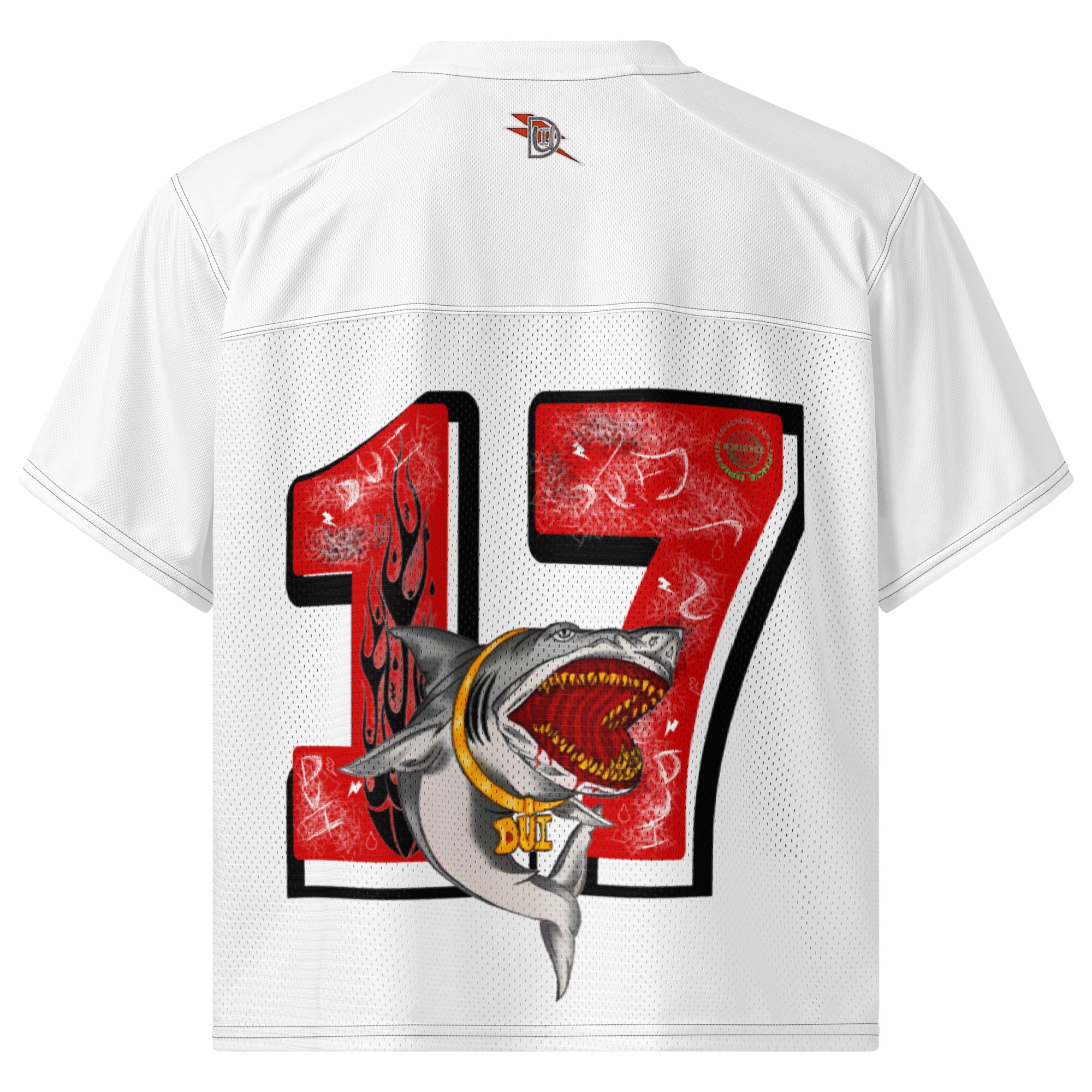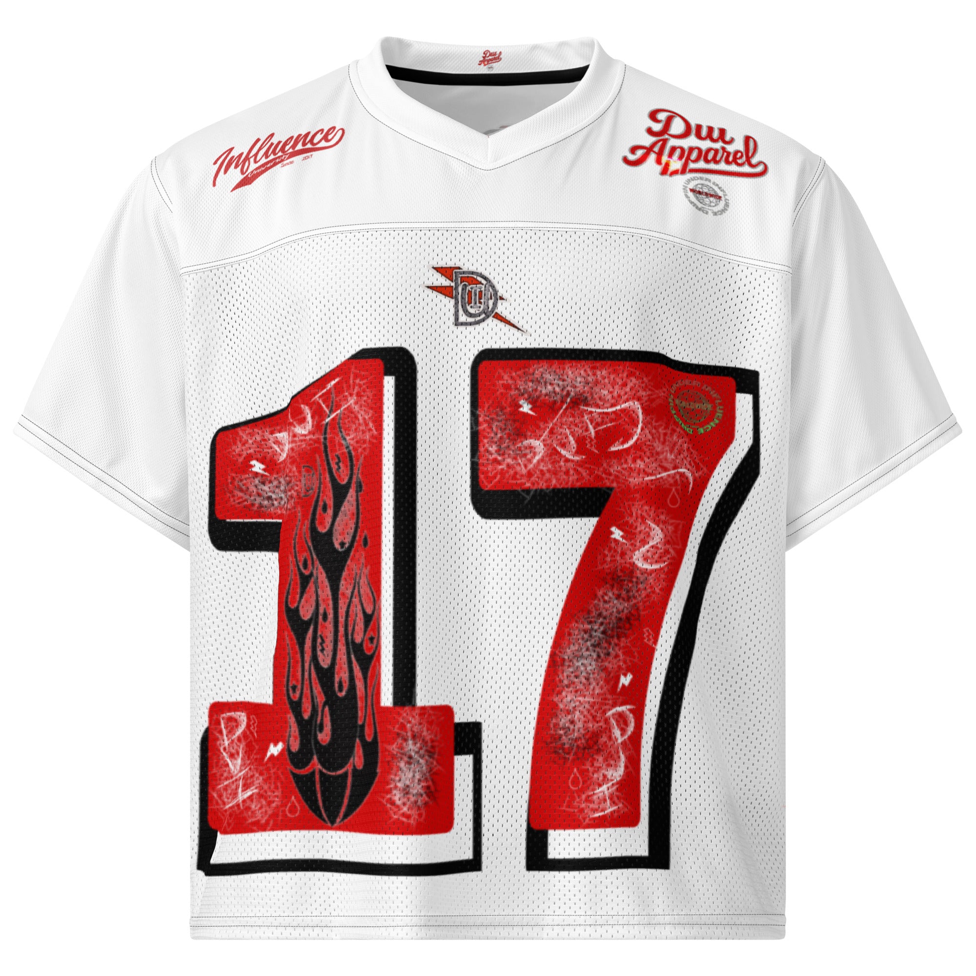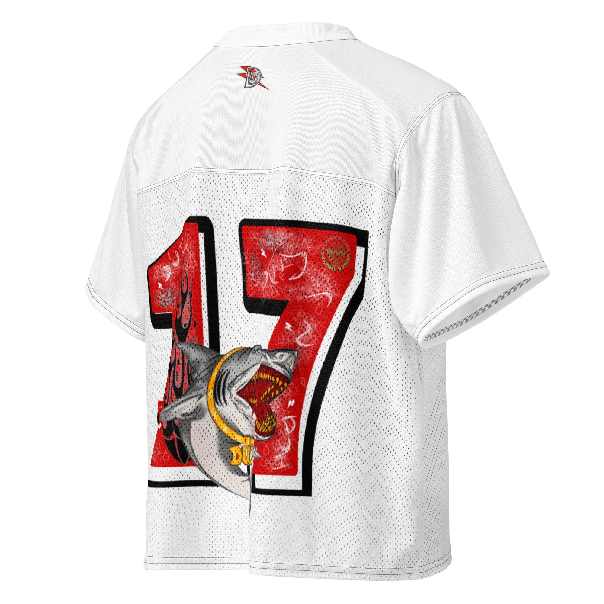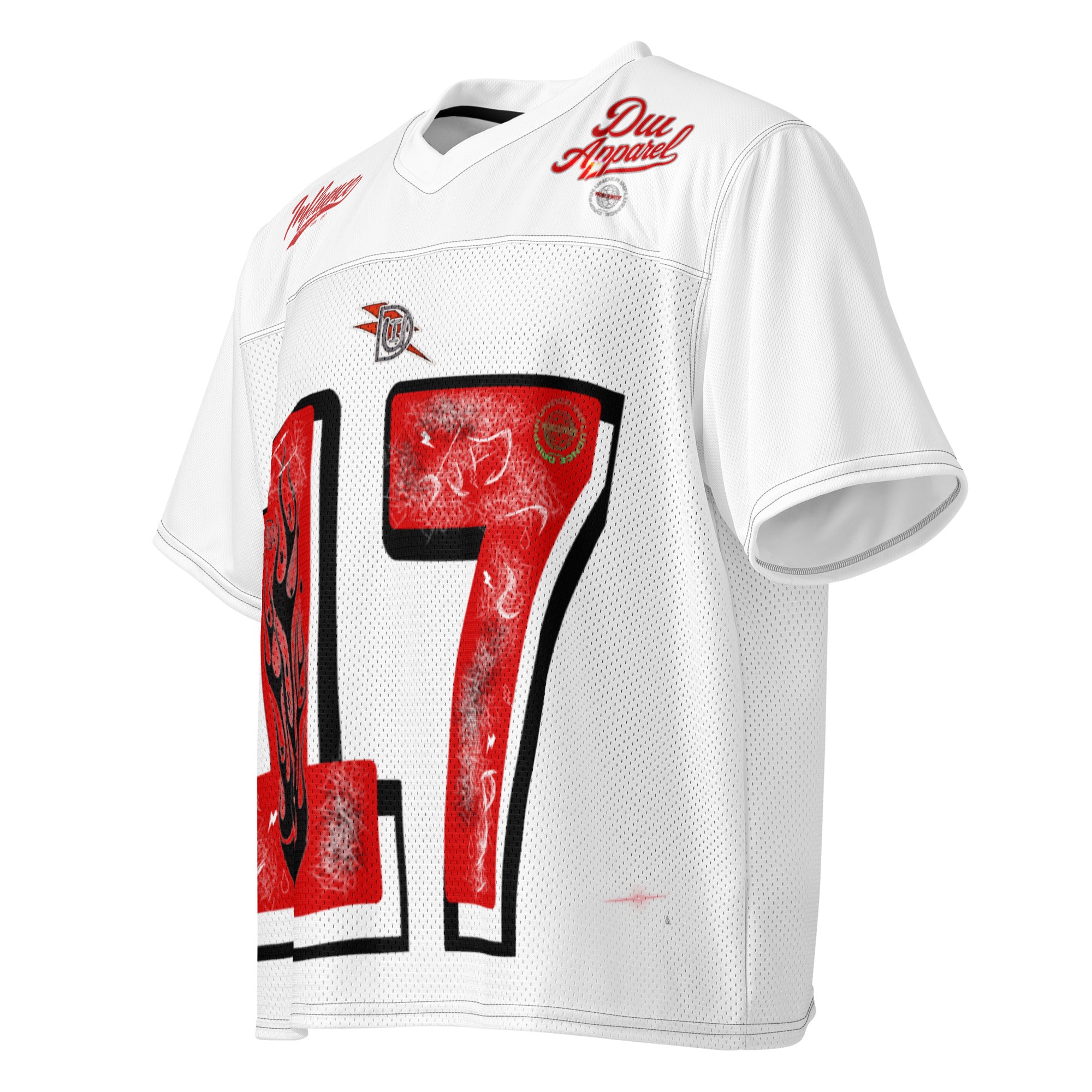 A breathable football jersey with silky top fabric and heavy mesh bottom. Moisture-wicking, 2-way stretch, and relaxed fit.